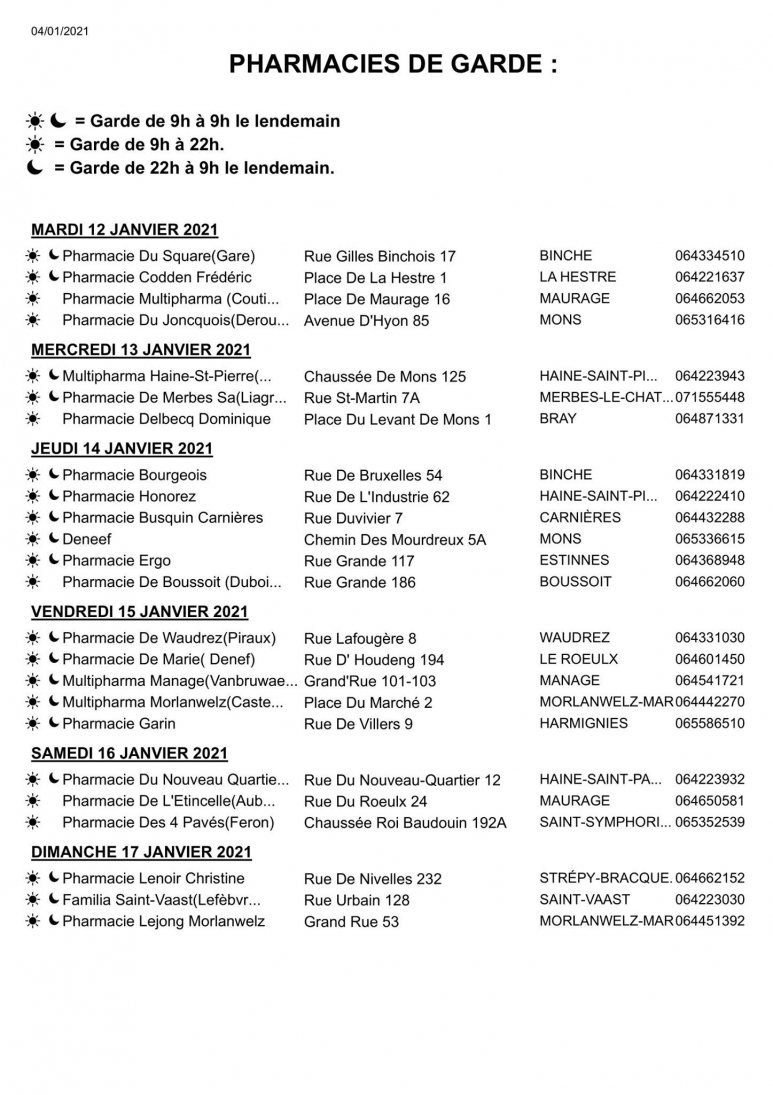 mardi 12 janvier 2021 13h13 Pharmacies de garde du 12 au 17 janvier Tweet Share Lien permanent 0 commentaire